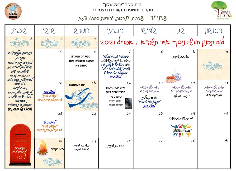 יום ראשון יום שני יום שלישי יום רביעי יום חמישי יום שישי שבת